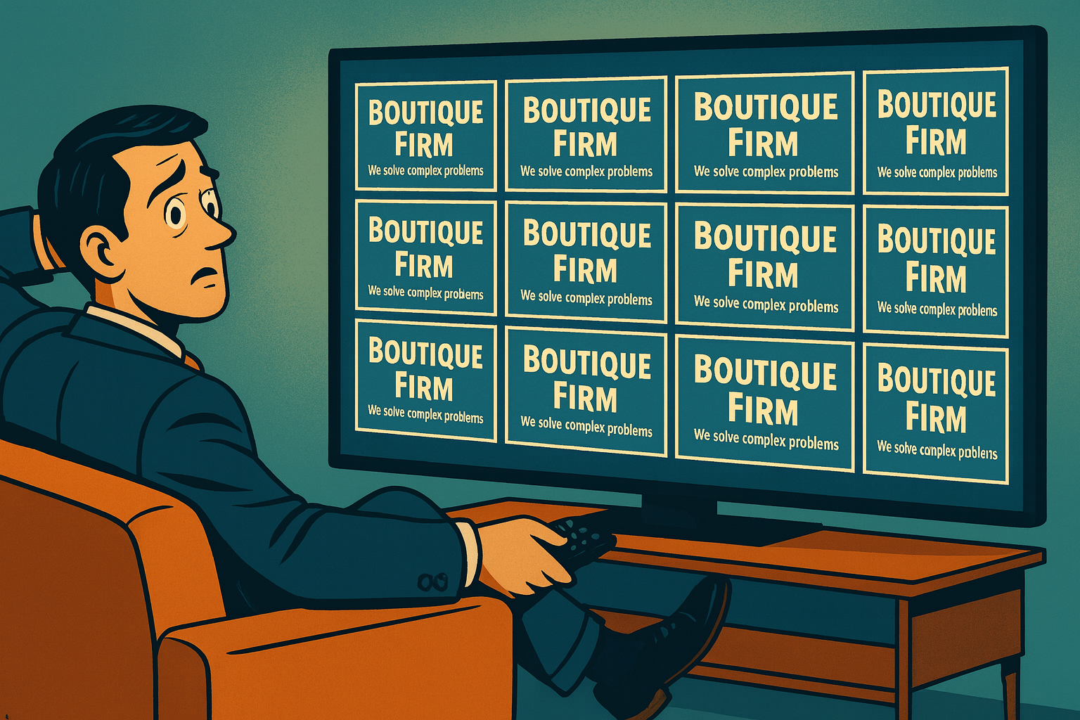 So what is a boutique firm to do in this environment? If you are a long-time reader, you probably already know where I am going with this - positioning is key. Not the veneer kind of positioning that's really just messaging wrapped in moniker of positioning. Real positioning where the firm actually takes a position (yep it's actually in the name), and does the hard work to actually own an idea in the minds of their ideal clients. But let's get a bit more specific, what should your firm do once you've made the positioning decision?